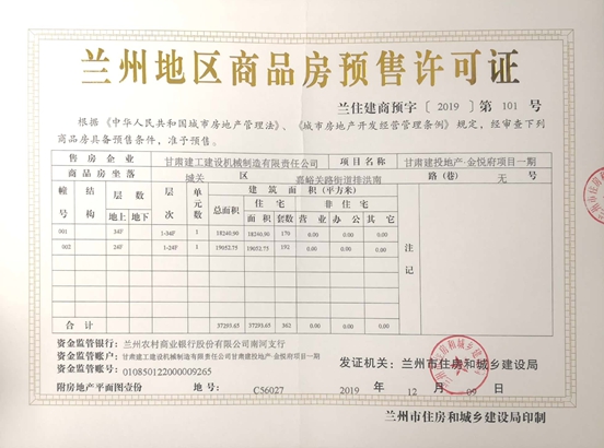 近日,甘肅建投地產·金悅府項目一期成功取得《商品房預售許可證》,為項目后續(xù)工作的開展奠定了堅實基礎。