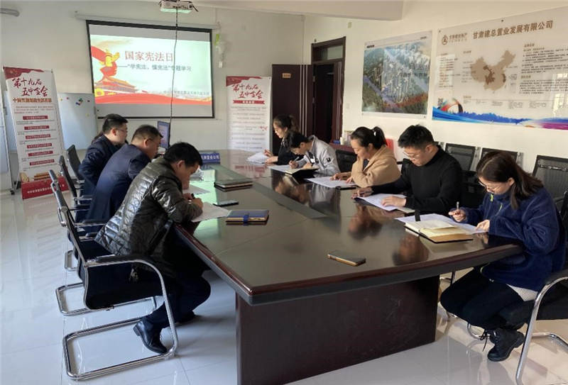黨支部以《中華人民共和國(guó)憲法》及習(xí)近平依法治國(guó)相關(guān)重要論述為依據(jù),從憲法進(jìn)企業(yè)的角度講述在企業(yè)開(kāi)發(fā)建設(shè)中的作用,要求全體職工加強(qiáng)憲法學(xué)習(xí),不斷增強(qiáng)憲法意識(shí),維護(hù)憲法權(quán)威。會(huì)上,黨支部書(shū)記對(duì)全體人員進(jìn)行憲法理論知識(shí)測(cè)試,進(jìn)一步鞏固憲法學(xué)習(xí)內(nèi)容。