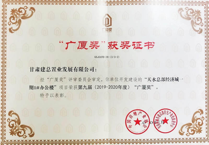 天水三盤(pán)聯(lián)動(dòng), 碩果累累。天水是公司精心打造的省內(nèi)第二大房地產(chǎn)市場(chǎng),天水總部經(jīng)濟(jì)城、上尚宅、上河郡、天水中心在幾年間連續(xù)開(kāi)盤(pán),其中天水總部經(jīng)濟(jì)城一期1#辦公樓榮獲第九屆(2019-2020年度)“廣廈獎(jiǎng)”,該項(xiàng)目自開(kāi)建以來(lái),就備受社會(huì)各界的關(guān)注,曾榮獲甘肅省建設(shè)工程飛天獎(jiǎng)、天水市建設(shè)工程麥積獎(jiǎng)等,2018年在接受白俄羅斯培訓(xùn)團(tuán)以及第十三期甘肅省國(guó)際交流員研習(xí)班學(xué)員的觀摩時(shí)深受好評(píng)。