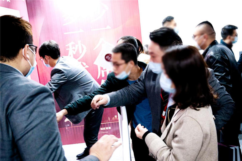 開(kāi)盤期間,在現(xiàn)場(chǎng)工作人員的引導(dǎo)下,到場(chǎng)客戶按照防疫要求,有序進(jìn)入營(yíng)銷中心。雖然每個(gè)人都帶著口罩,卻依然能感受到客戶洋溢的笑容,每位客戶都心懷憧憬,對(duì)理想居所的期盼溢于言表。隨著主持人宣布選房開(kāi)始,將氣氛推至高潮,客戶憑鎖資號(hào)有序進(jìn)入選房區(qū),爭(zhēng)分奪秒挑選心儀的房源。