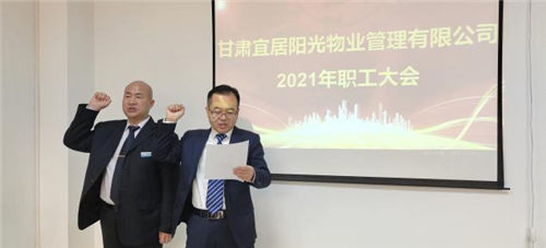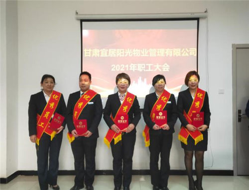 2021年3月17日,甘肅宜居陽光物業(yè)管理有限公司2021年職工大會順利召開,物業(yè)公司機關(guān)全體工作人員、各物業(yè)中心主任、2020年度先進代表參加會議,置業(yè)公司黨委委員、工會主席孫靜,置業(yè)公司紀委辦公室主任孟曉龍應(yīng)邀出席會議。