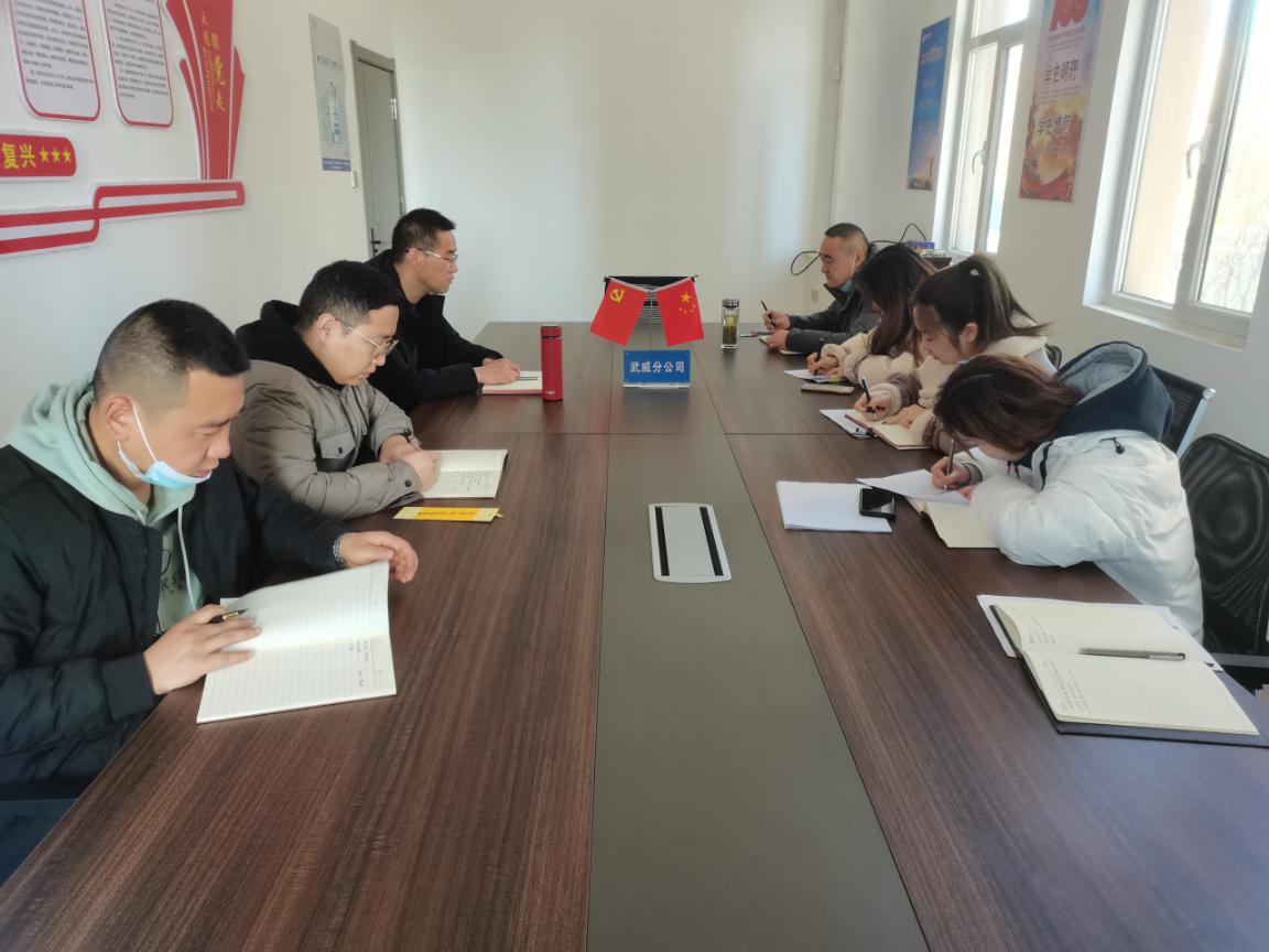 2月23日上午,武威分公司召開2022年工作安排暨收心會,分公司全體員工參加會議。