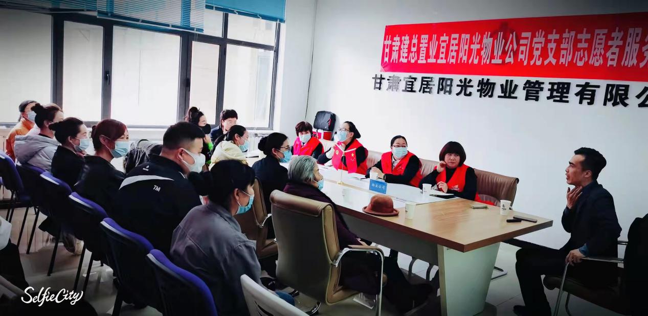 為進一步弘揚雷鋒精神,深入落實置業(yè)公司職代會、工代會精神,3月5日,中共甘肅建總置業(yè)宜居陽光物業(yè)公司黨支部組織所屬蘭州區(qū)域各項目中心和百酈灣物業(yè)服務(wù)中心相繼開展了以“弘揚雷鋒精神、踐行志愿服務(wù)”為主題的黨日活動。