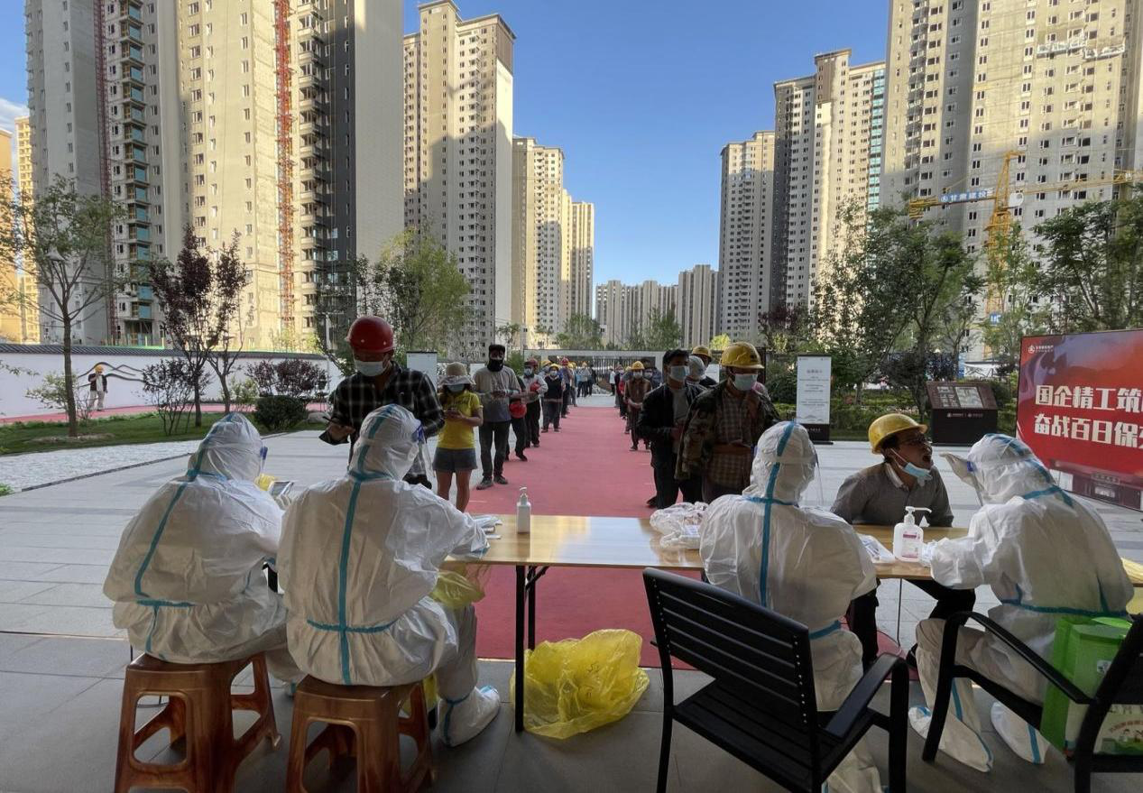 在臨夏全州疫情最為緊要的關(guān)頭,面對商場、小區(qū)全部封控的情況下,本著盡量減少相關(guān)人員接觸為原則,提高醫(yī)護人員追陽溯源的效率,保證現(xiàn)場封控施工人員安全的考慮,臨夏公司副經(jīng)理羅兆清主動聯(lián)系社區(qū)負責人,抽調(diào)建設管理部馬騰飛、尹自理、祁先鋒一行四人申請成為臨時志愿者,主動承擔起社區(qū)的有關(guān)疫情防控需要,臨夏公司也給項目所在轄區(qū)的街道、派出所以及職工宿舍所在小區(qū)物業(yè)捐贈了防控物資。在百酈天香項目全封閉管控期內(nèi),羅兆清組織建立了以建設單位人員為主的項目疫情防控網(wǎng)格化管理制度,重點由臨夏公司建設管理部人員與各標段項目經(jīng)理為骨干力量擔任網(wǎng)格員,對項目疫情防控工作任務進行劃片劃塊,責任清楚劃分至每一個網(wǎng)格員,積極主動配合住建部門進行項目核酸采集工作,落實檢查辦公區(qū)、生活區(qū)等防疫工作,保證項目在現(xiàn)有條件下安全施工。