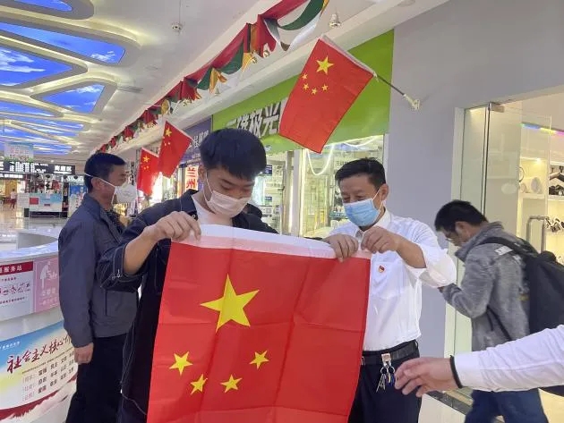 為迎接十一國慶節(jié)的到來,弘揚(yáng)愛國主義精神,賡續(xù)紅色革命血脈,根據(jù)置業(yè)公司黨委相關(guān)要求,資產(chǎn)公司黨支部于國慶節(jié)前開展“喜迎國慶,贈送國旗,共享愛國情”活動,為項(xiàng)目掛國旗,為商戶送國旗。