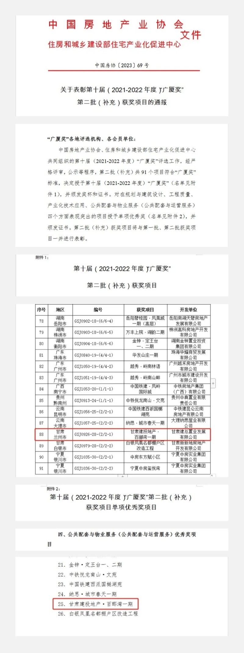 5月15日,由甘肅建總置業(yè)發(fā)展有限公司開發(fā)建設的百酈灣一期項目榮獲中國房地產(chǎn)業(yè)最高榮譽獎項“廣廈獎”,其中公共配套與物業(yè)服務獲得第十屆廣廈獎單項優(yōu)秀獎,成為甘肅省獲此殊榮的兩個項目之一。